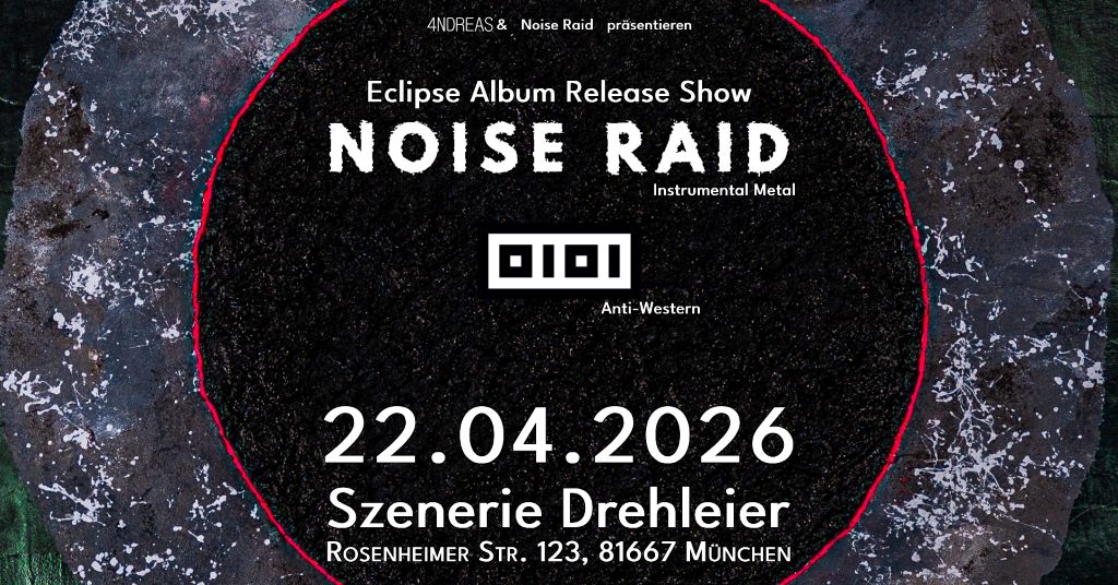 Das Warten hat ein Ende! Am 22.04.2026 feiern Noise Raid die Veröffentlichung ihres neuen Albums „Eclipse“. Knapp 3,5 Jahre nach „Cosmic Radiation“ präsentiert das Münchner Trio die nächste Evolution seines Sounds live und schlägt damit ein neues, intensives Kapitel auf. Neben dem kompletten neuen Album stehen auch handverlesene Klassiker auf der Setlist.