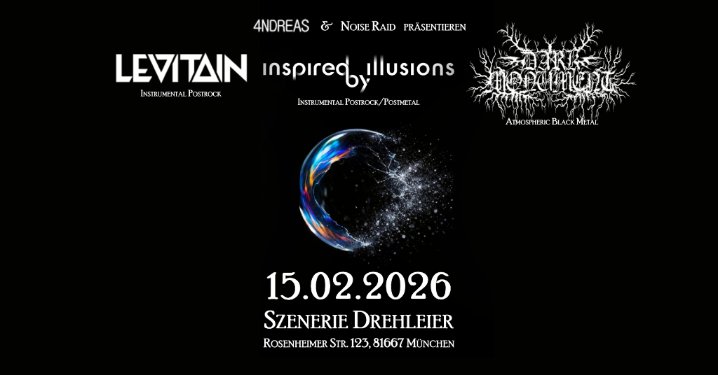 Einlass: 19:00 | Beginn: 20:00Abendkasse: 18 € | Vorverkauf: 16,42 € (zzgl. VVK.-Geb.)VVK: https://rausgegangen.de/events/inspired-by-illusions-dark-monument-levitain-postrockpostmet-0 Diese Veranstaltung wird von 4NDREAS veranstaltet. Präsentiert von 4NDREAS & Noise Raid. inspired by illusionsStil: Instrumental […]